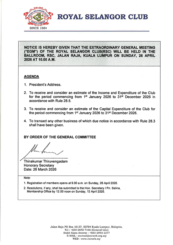 Extra-Ordinary General Meeting on Sunday, 26 April 2026