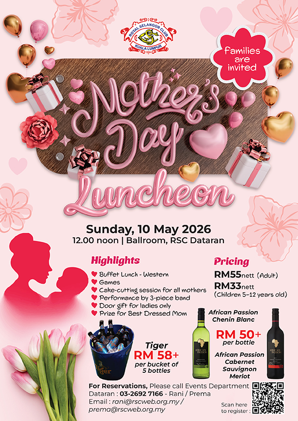 Mother's Day Luncheon Date : 10 May 2026Time : - Venue : Ballroom, RSC Dataran Please click HERE to registerBack to Events