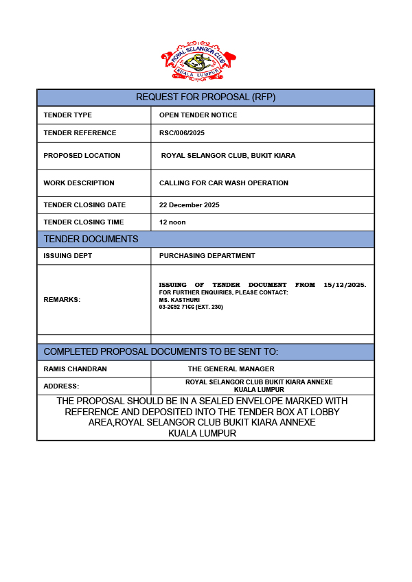 Open Tender, RSC Kiara Car Wash